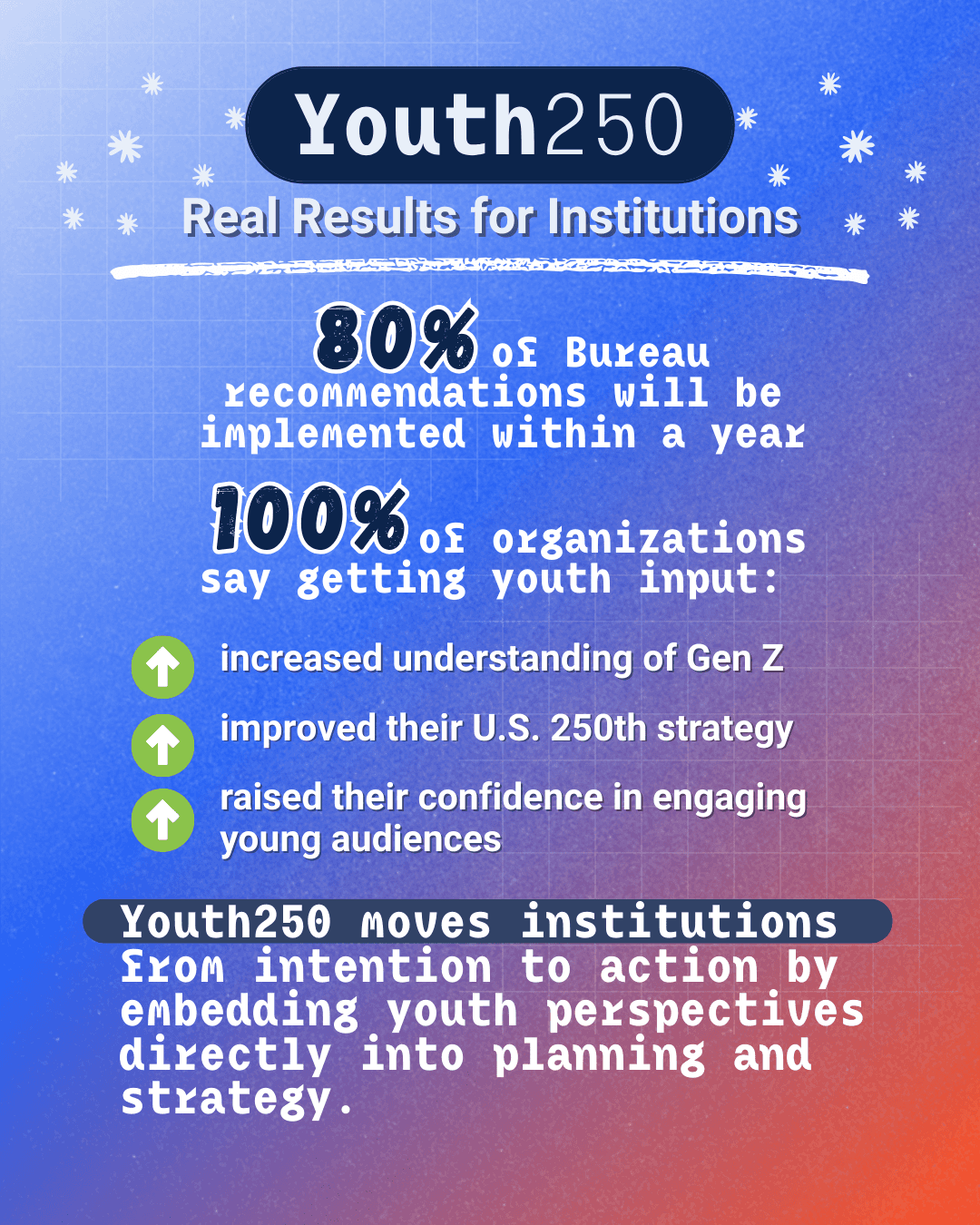 With Youth250, we're increasing youth contribution, influence and visibility – and strengthening our institutions' resilience and trust at the same time.