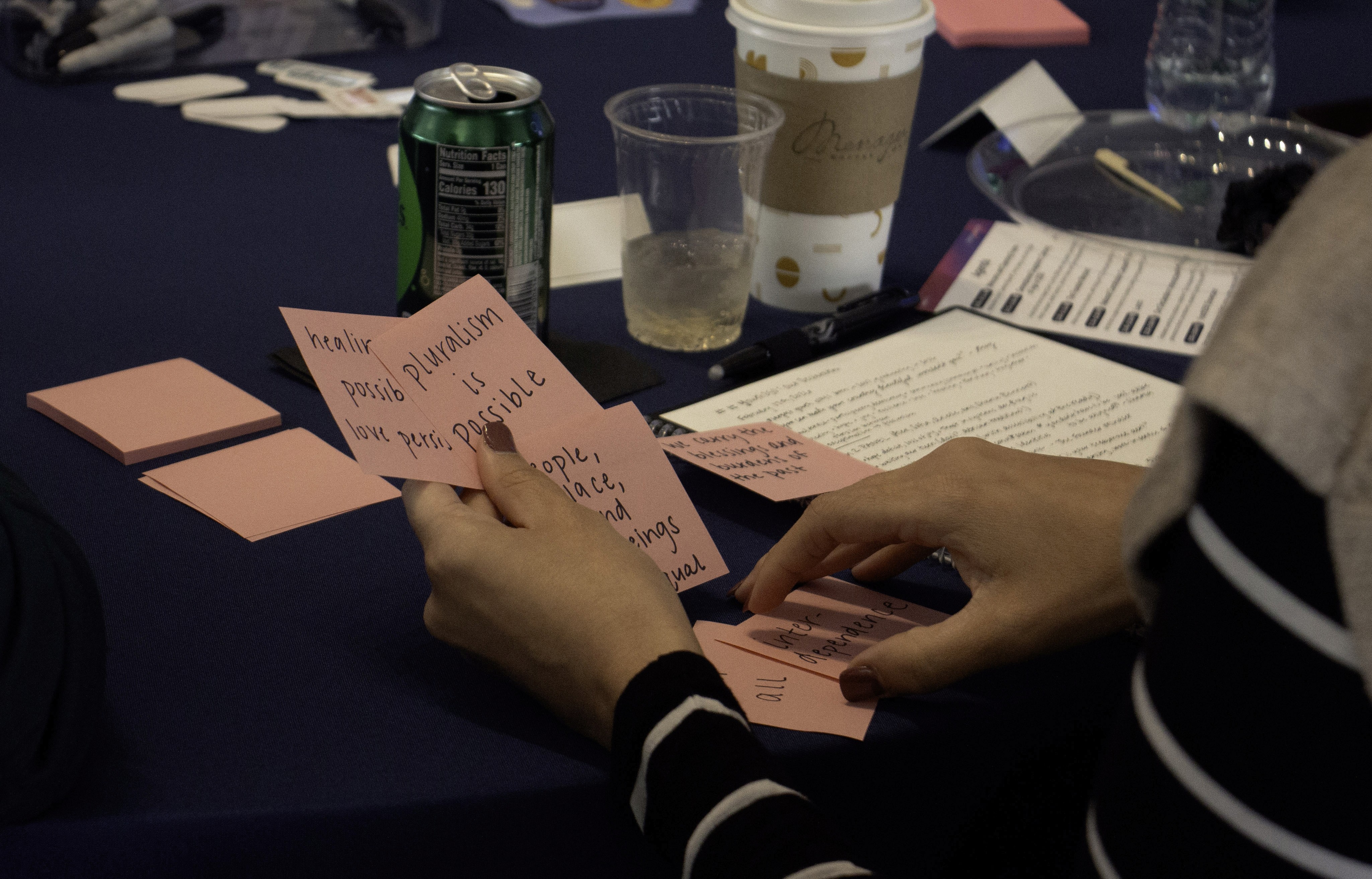 Facilitated workshop to produce a collective “Our Declaration” live, from grievances to fresh commitments, visualized by artist Haley McDevitt on a large scroll.