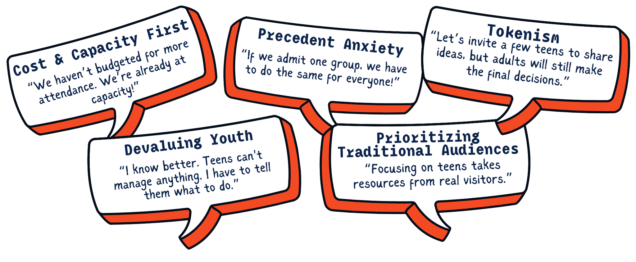 Becoming a youth-centered space starts with shifting your organization's internal mindset. Swipe back and forth between the images. Which sounds more familiar in your workplace?