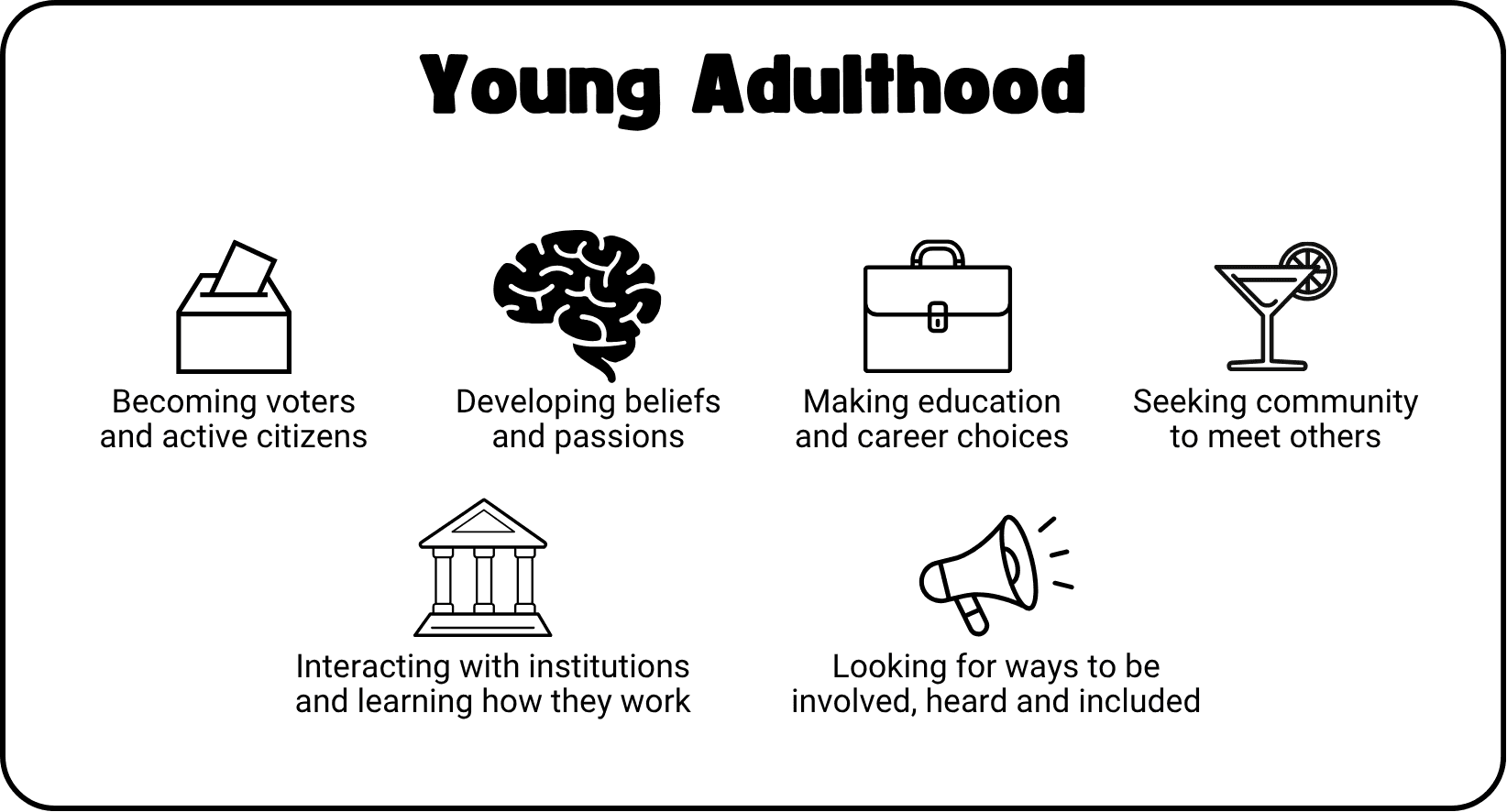 Young adulthood is a pivotal stage of life, roughly spanning ages 18 to 30, marked by ongoing brain development, expanding independence, and deep social and moral formation. It’s the time when identity, purpose, and worldview solidify through exploration, risk-taking, and connection