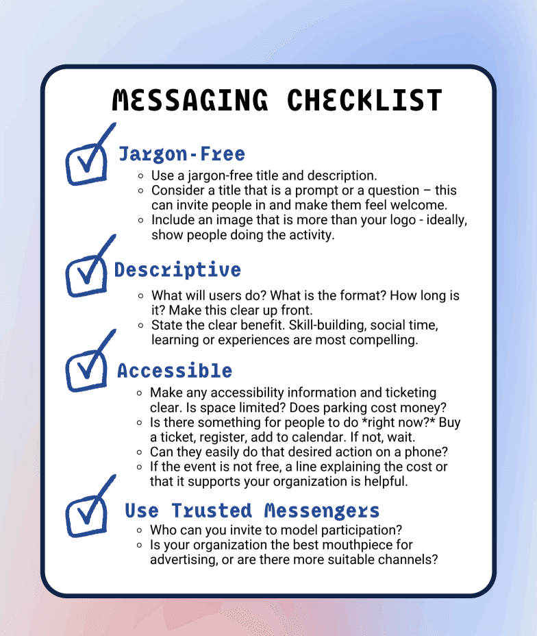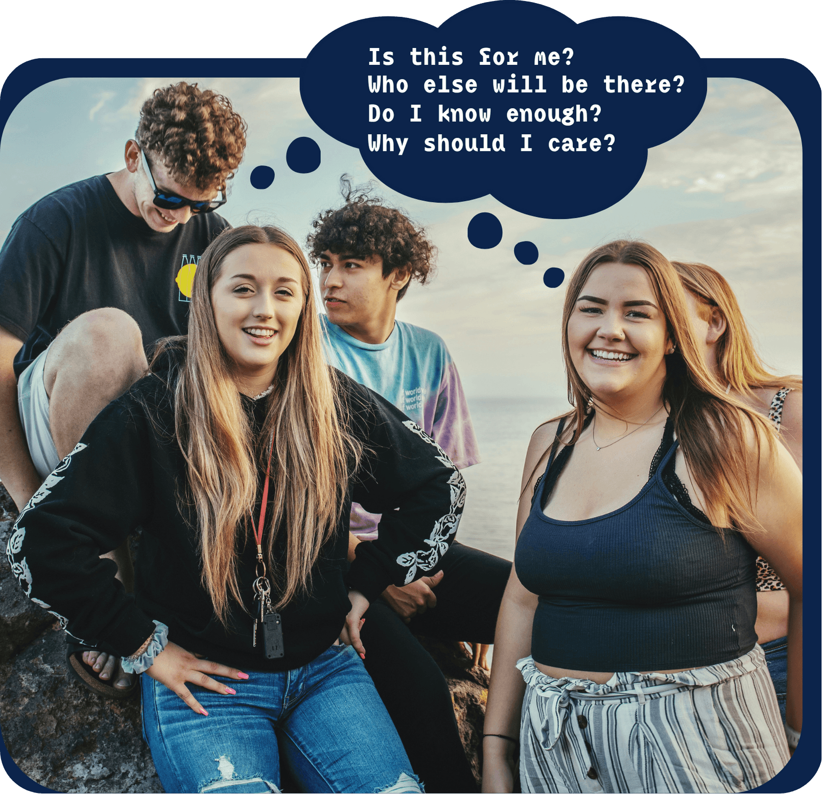 Our research shows that young adults are asking four key questions when it comes to participating in civic life: Is this for me? Who else will be there? Do I know enough? Why should I care?