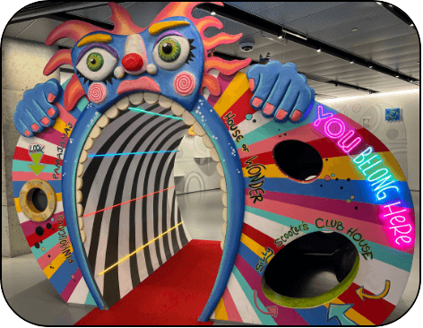 An installation, “You Belong Here” by Cincinnati artist Pam Kravetz and collaborators (Pam & Co), greets guests with a joyful invitation to enter through the mouth of a giant character named Kingsley. The installation celebrates play, humor, and creative expression as vital entry points for learning and connection.